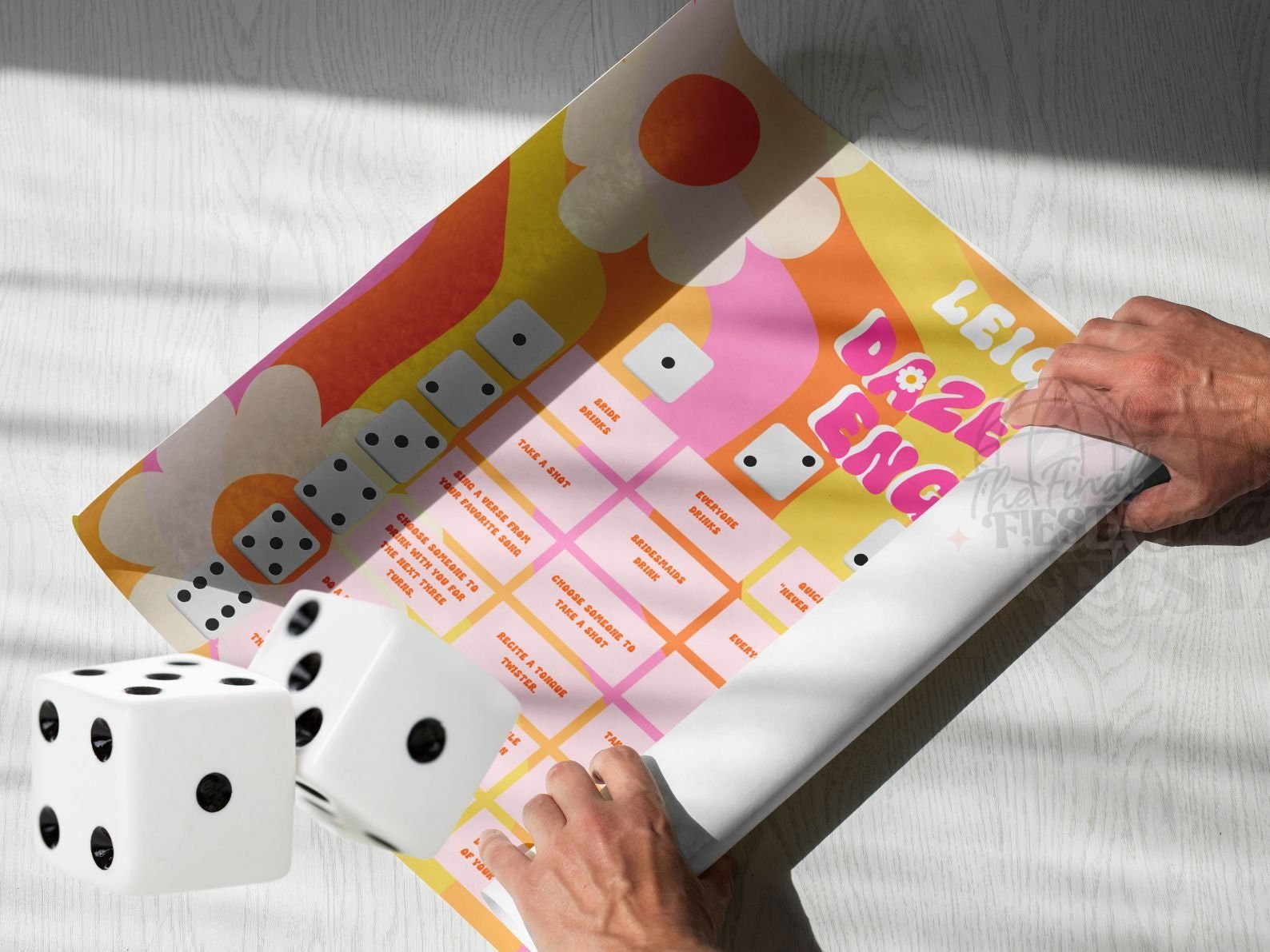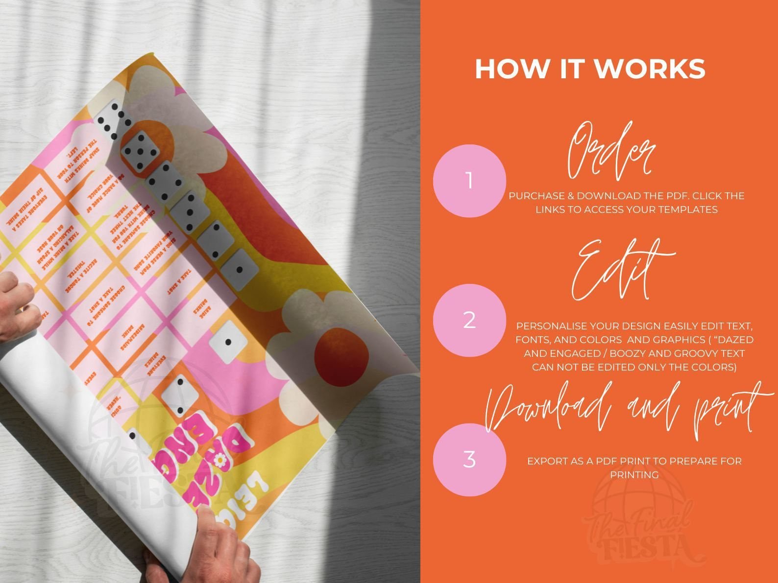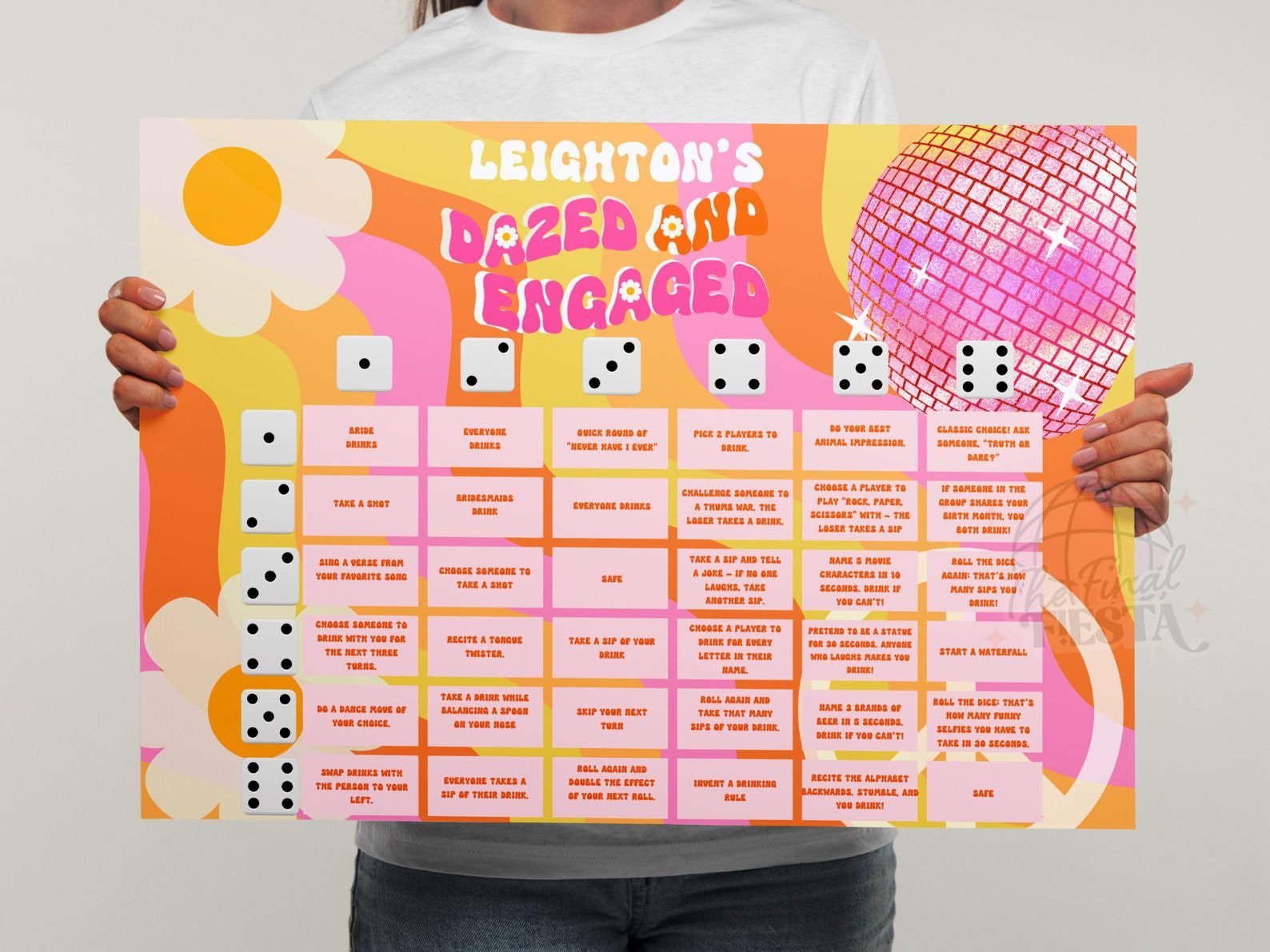 2- Edit the board with the bride’s favorite memories, funny challenges, and personalized messages. For better printing results donwload as PDF PRINT.