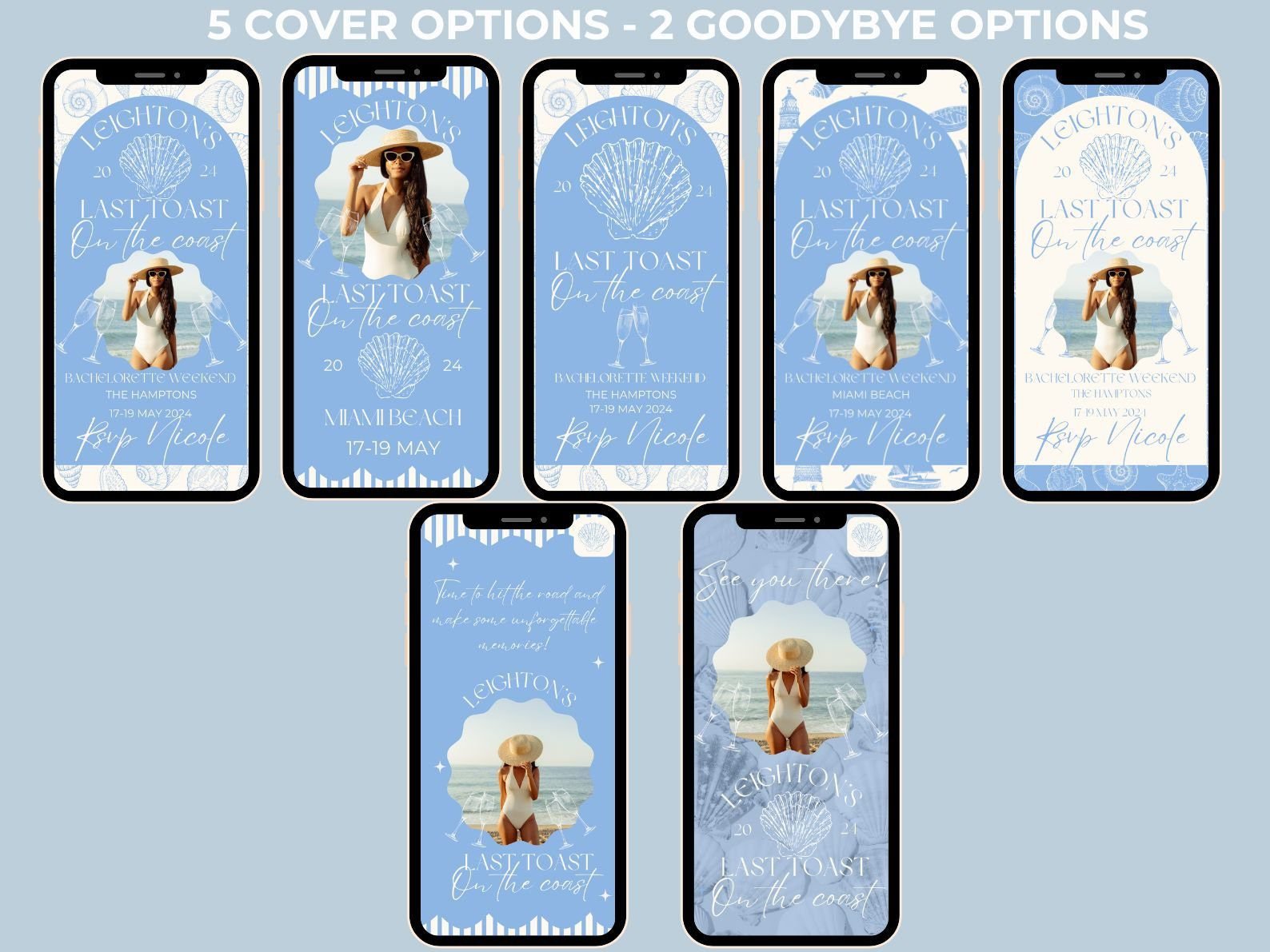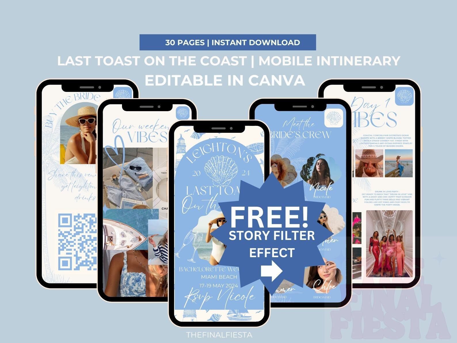 As a special bonus, with your purchase of our Digital Mobile Last toast on the coast Bachelorette Weekend Itinerary Template, you’ll receive a personalized Instagram story filter! Add an extra layer of fun to your bachelorette party and let the festivities shine through your social media stories.
