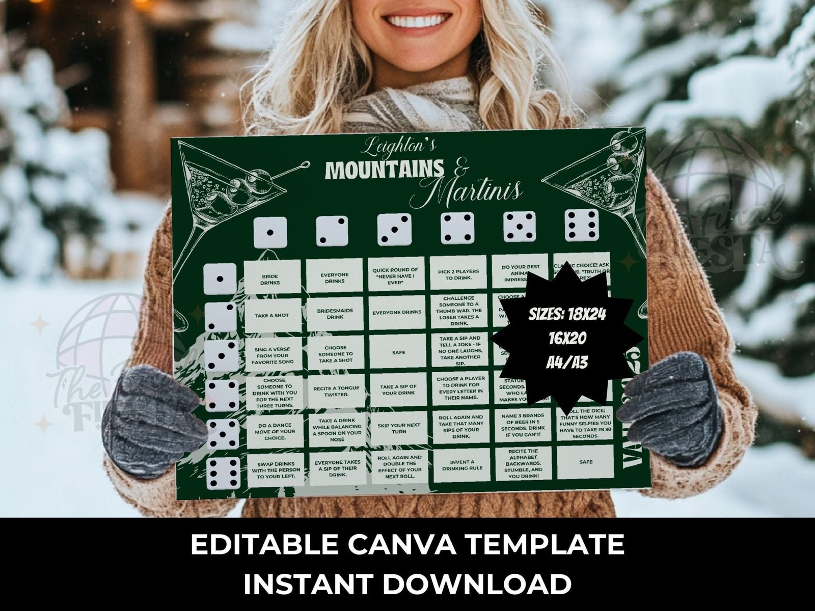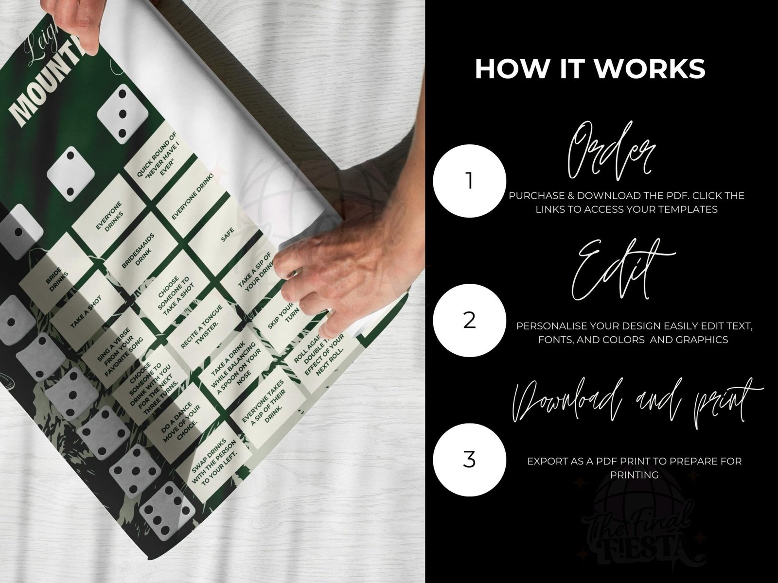 2- Edit the board with the bride’s favorite memories, funny challenges, and personalized messages. For better printing results donwload as PDF PRINT.